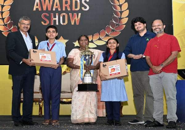 சென்னை, கலைவாணர் அரங்கில் நடந்த தினமலர் பட்டம் வினாடி - வினா போட்டியில், முதல் பரிசை வென்ற கிழக்கு தாம்பரம் சங்கரா வித்யாலயா மெட்ரிக் மேல்நிலைப் பள்ளி மாணவர்கள் ஸ்ரீவத்ஸா குமார் மற்றும் அனன்யா. உடன் சென்னை இன்ஸ்டிடியூட் ஆப் டெக்னாலஜி தலைவர் ஸ்ரீராம், தமிழ் ஆசிரியை சாந்தி லட்சுமி, அக்னிகுல் நிறுவனத்தின் இணை நிறுவனர் மொயின், தினமலர் இணை ஆசிரியர் கிருஷ்ணமூர்த்தி.