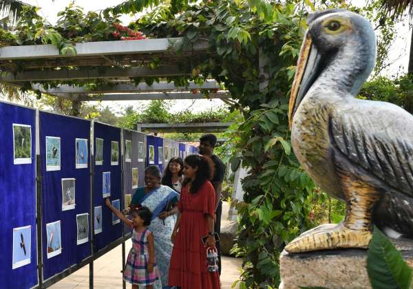 உலக சதுப்பு நில தினத்தையொட்டி கோவை வெள்ளலூர் குளக்கரை, பட்டாம்பூச்சி பூங்காவில் நடந்த புகைப்பட கண்காட்சியினை கண்டு ரசித்த இயற்கை ஆர்வலர்கள்.