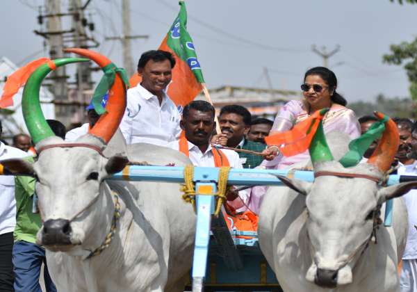 கோவை வெள்ளலூர் பகுதியில் பா.ஜ., சார்பில் நடந்த ரேக்ளா போட்டியை பார்வையிட வந்த நடிகை ராதிகா.