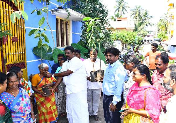 புதுச்சேரி அறிவியல், தொழில்நுட்பம் மற்றும் சுற்றுச்சூழல் துறை மாசுக் கட்டுப்பாட்டுக்கு குழு சார்பில் ஒரு வீடு ஒரு மரம் திட்டத்தின் கீழ் கல்யாணசுந்தரம் எம்.எல்.ஏ., மரக்கன்றுகளை வழங்கினார்.