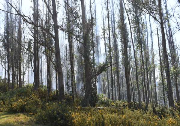 ஊட்டி பிங்கர்போஸ்ட் அருகே கால்ப்கிளப் ஒட்டிய வனப்பகுதியில், காட்டுத்தீ பரவியது.