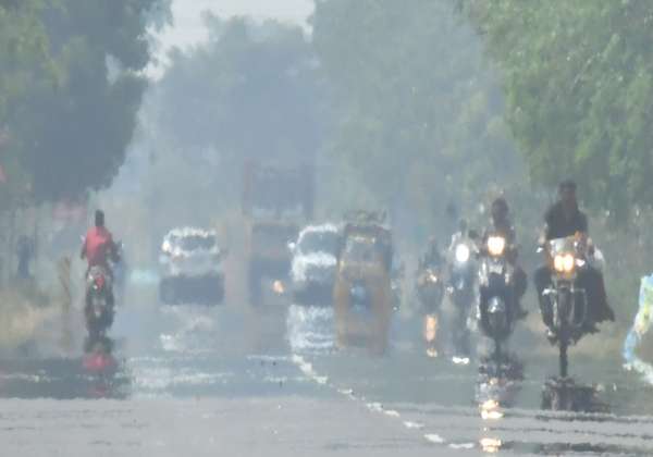 சிவகங்கை - திருப்புத்தூர் ரோட்டில் வெயிலின் தாக்கத்தால் கானல் நீர் அதிகமாக தென்பட்டது.