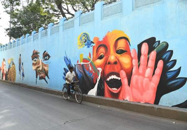 சென்னை, சைதாப்பேட்டை சி.பி. பவளவண்ணன் சுரங்கப்பாதை தடுப்புச் சுவர்களில் கண்களை கவரும் விதமாக வண்ணமயமான சுவர் ஓவியங்கள் வரையப்பட்டுள்ளன.