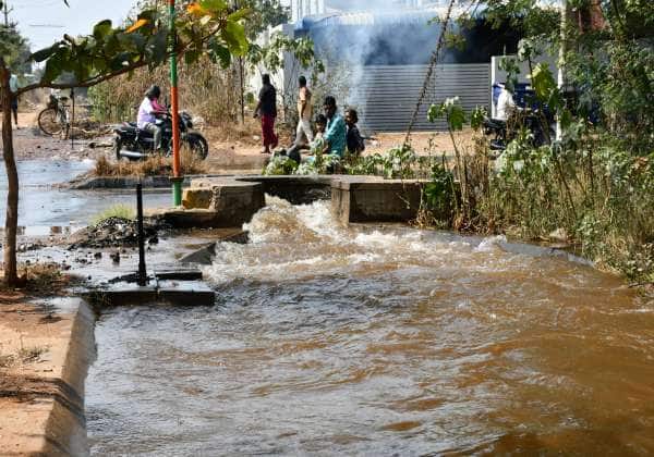 திருப்பூர், தாராபுரம் ரோடு கோவில்வழி பி. ஏ.பி., கால்வாயில் அடைப்பு ஏற்பட்டு தண்ணீ ரோட்டில் ஓடியது.