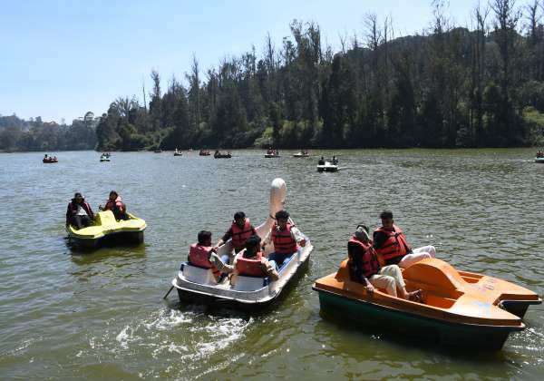 ஊட்டி படகு இல்லத்தில், ஏராளமான சுற்றுலா பயணிகள் படகு சவாரி சென்றனர்.