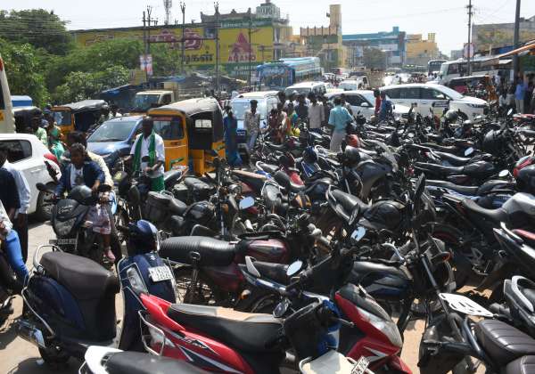 திருவள்ளூர் மாவட்டம் திருத்தணியில் தைப்பூசம் என்பதால் மலைக்கு செல்பவர்கள் திருத்தணி அரக்கோணம் சாலையில் இரு சக்கரம் வாகனம் நிறுத்துவதால் போக்குவரத்து பாதிப்பு