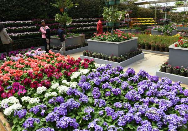 ஊட்டி பர்ன்ஹில் பகுதியிலுள்ள, கர்நாடக தோட்டக்கலைத்துறை பூங்கா நர்சரியில், பூத்து குலுங்கும் பூக்களை, சுற்றுலா பயணிகள் ஆர்வத்துடன் ரசித்து செல்கின்றனர்.