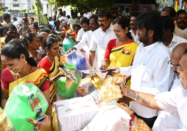 தே.மு.தி.க வின் 25வது கொடி நாளை முன்னிட்டு, அக்கட்சியின் பொதுச்செயலாளர் பிரேமலதா விஜயகாந்த், நலத்திட்ட உதவிகளை வழங்கினார்.இடம்: கோயம்பேடு.