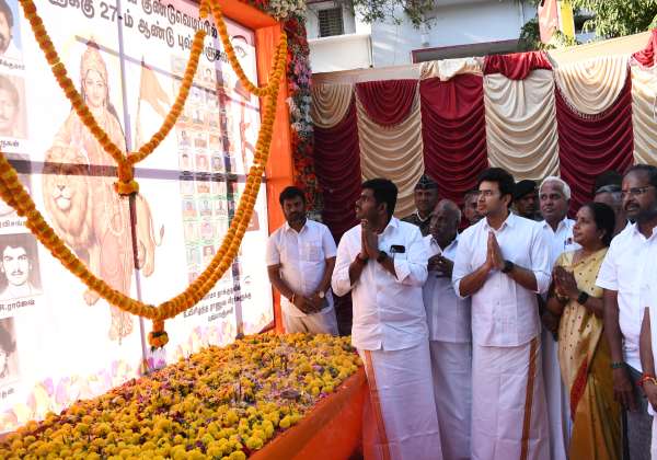 கோவை குண்டுவெடிப்பில் பலியானவர்களுக்கு அஞ்சலி செலுத்தும் நிகழ்ச்சி கோவை ஆர்.எஸ். புரத்தில் நடந்ததது. இதில் பா.ஜ., மாநில தலைவர் அண்ணாமலை மலர் தூவி அஞ்சலி செலுத்தினார்.