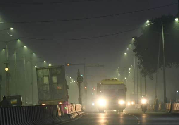 சென்னையில் பனிப்பொழிவு புகை மண்டலம் போல் காணப்பட்டன.இடம்: திருவொற்றியூர்.