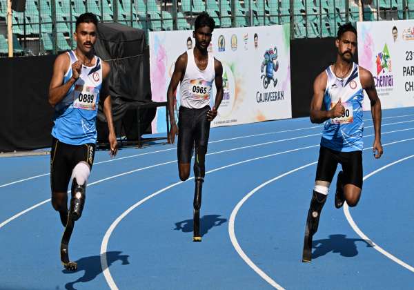 சென்னையில் நடைபெற்று வரும் தேசிய அளவிலான ஊனமுற்றோர் விளையாட்டு போட்டியில் ஓட்டப்பந்தயத்தில் ஓடிய மாற்றத்திறனாளி வீரர்கள்.