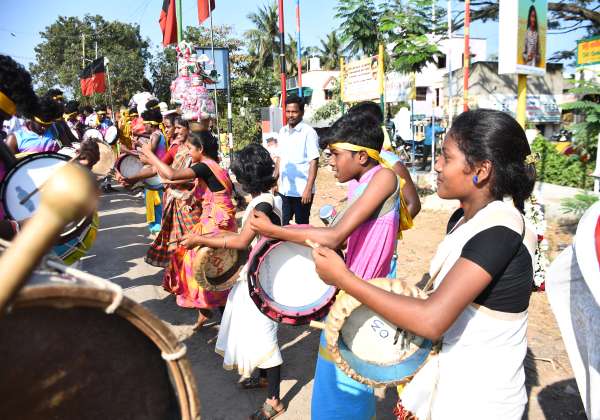 கடலூருக்கு முதல்வர் வருகையையொட்டி மஞ்சக்குப்பம் ஆல்பேட்டை செக்போஸ்டில் சிறுவர்களை வைத்து மேளம் அடித்து முதல்வரை வரவேற்றனர் .