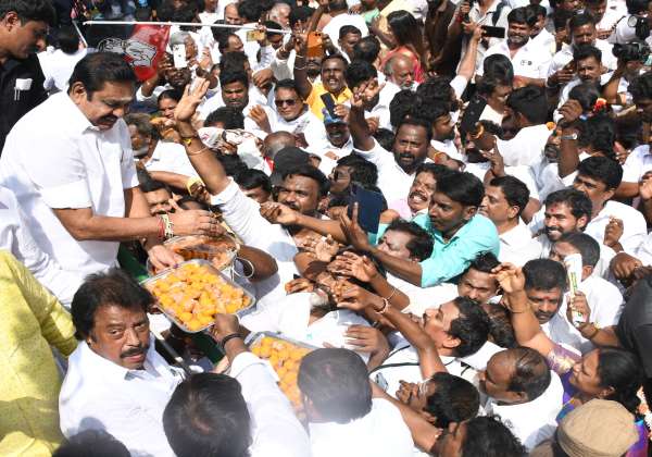 சென்னை ராயப்பேட்டை அ.தி.மு.க.அலுவலகத்தில் பொதுச்செயலாளர் இ.பி.எஸ்., முன்னாள் முதல்வர் ஜெயலலிதாவின் பிறந்தநாளை முன்னிட்டு, அவரது சிலைக்கு மாலை அணிவித்து தொண்டர்களுக்கு இனிப்பு வழங்கினார்.