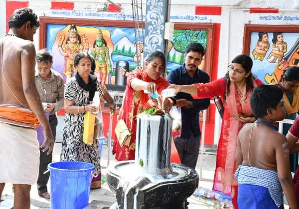 மஹா சிவராத்திரியை முன்னிட்டு, புரசைவாக்கம் கங்காதீஸ்வரர் கோவிலில் உள்ள சிவலிங்கத்திற்கு அபிஷேகம் செய்து வழிபட்ட பக்தர்கள்.
