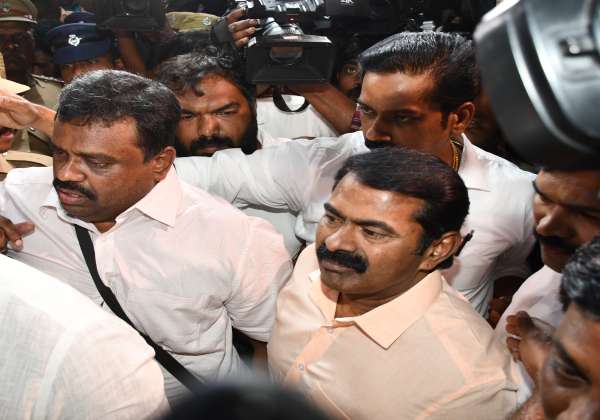 வளசரவாக்கம் காவல் நிலையத்தில் ஆஜராக வந்த நாம் தமிழர் கட்சி ஒருங்கிணைப்பாளர் சீமான்