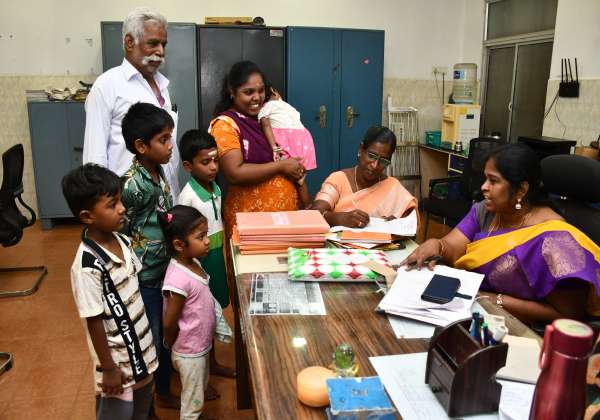 அரசு பள்ளிகளில் 2025-26 கல்வியாண்டிற்கான மாணவர் சேர்க்கை துவங்கியது. புல்லா அவென்யூ மஞ்சாகொல்லை மாநகராட்சி தொடக்கப்பள்ளியில் விண்ணப்பங்களை பெற்ற மாணவர்கள் மற்றும் பெற்றோர். இடம் : அமைந்தகரை