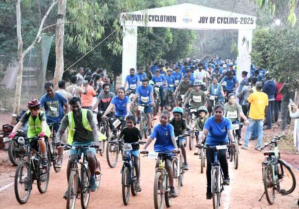 விழுப்புரம் மாவட்டம் ஆரோவில் நகரம் உதயமான 57 ஆம் ஆண்டு விழாவை முன்னிட்டு சைக்கிளத்தான் போட்டி நடந்தது.