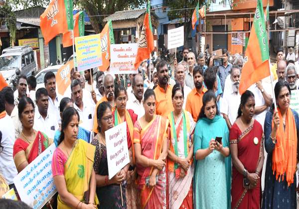 வெள்ளலூரை மாநகராட்சியுடன் இணைக்கக்கூடாது என்று வலியுறுத்தி பா.ஜ. , கட்சி சார்பில் வெள்ளலூர் பஸ் ஸ்டாண்டில் ஆர்பாட்டம் செய்தனர்.