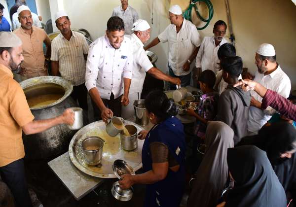 கோவை அல் அமீன் காலனியில் உள்ள ஜமாத்தில் ரம்ஜான் நோன்பு இருக்கும் இஸ்லாமியர்கள் இலவச நோன்பு கஞ்சி வாங்கி சென்றனர்.