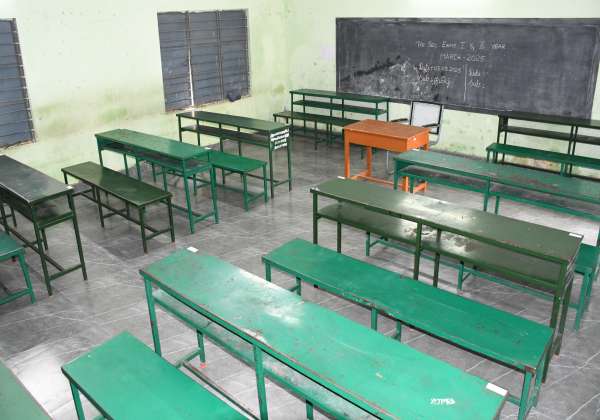 பொது தேர்வு துவங்குவதை ஒட்டி, தேர்வுக்கு தயாராக உள்ள தேர்வு அறை. இடம்: திருப்பூர் பழனியம்மாள் மாநகராட்சி பள்ளி.