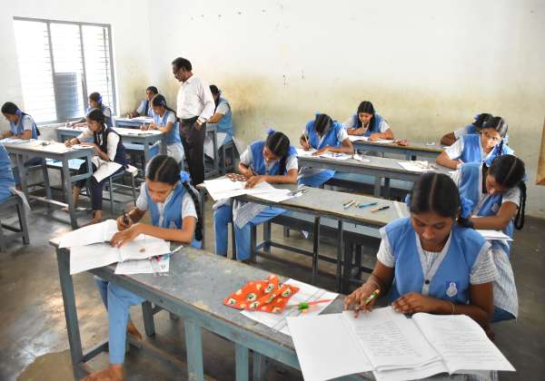 விருத்தாசலத்தில் நடந்த பிளஸ்2 பொதுத்தேர்வு எழுதும் மையத்தை டி .ஈ .ஓ., ராஜபாண்டியன் பார்வையிட்டார்.