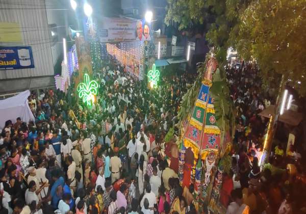 புதுச்சேரி 45 அடி ரோடு ஜீவா நகரில் நடந்த 48 ஆம் ஆண்டு மயான கொள்ளை விழாவில் வல்லாளக்கோட்டையை அழிக்க பக்தர்கள் வெள்ளத்தில் தேரில் எழுந்தருளிய சின்ன சுப்பராயப் பிள்ளை வீதி அங்காள பரமேஸ்வரி அம்மன்.