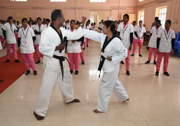 ஊட்டி சிறுவர் மன்றத்தில், போலீசாரால் அரசு நர்சிங் மாணவிகளுக்கு , அக்னி தற்காப்பு கலை பயிற்சி துவக்கப்பட்டது.