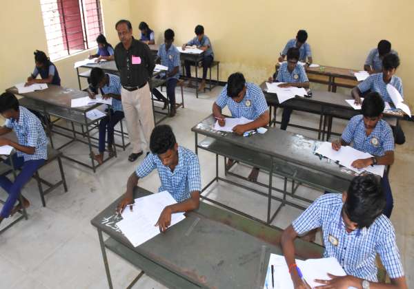 விழுப்புரம் அரசு ஆண்கள் மேல்நிலைப் பள்ளியில் பதினோராம் வகுப்பு அரசு பொது தேர்வு எழுதிய மாணவர்கள்.