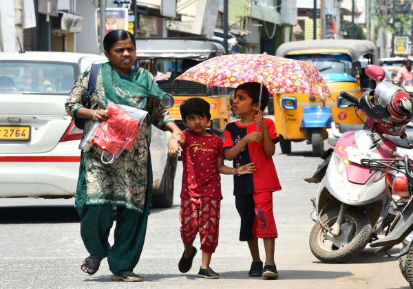 சென்னை நகரில் வெயில் தாக்கம் அதிகமாக இருந்ததால் பெரியவர்கள் கையில் குடைப்பிடித்தும்,குழந்தைகளுக்கு தலையில் தொப்பி அணிவித்தும் அழைத்து சென்றனர். இடம் கிண்டி