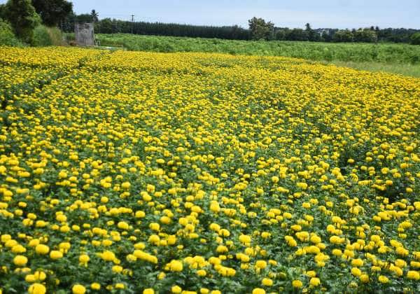 கடலூர் பண்ருட்டி அடுத்த திராசு கிராமத்தில் விவசாயிகள் பயிர் செய்யப்பட்ட மஞ்சள் சாமந்தி பூ பூத்து குலுங்கியது.