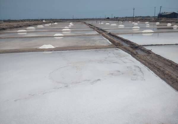 தேவிபட்டினம் அருகே திருப்பாலைக்குடி சந்தை பகுதியில் உப்பு உற்பத்தியில் தொழிலாளர்கள் ஈடுபட்டுள்ளனர்.