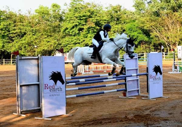புதுச்சேரி அடுத்த ஆரோவில் ரெட் எர்த் சார்பில் குதிரையேற்ற போட்டியில் கலந்து கொள்ள தகுதி தேர்வு நடந்தது.