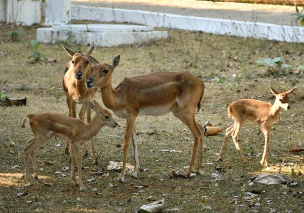 கவர்னர் மாளிகை வளாகத்தில் இறைதேடி சுற்றி திரியும் மான்கள் .