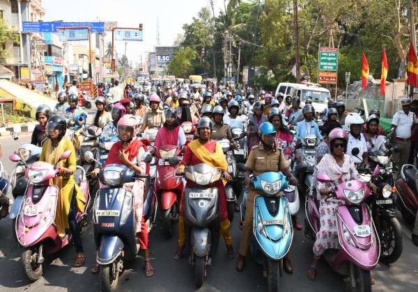 கடலூரில் போக்குவரத்து காவல்துறை சார்பில் மகளிர் தினத்தை முன்னிட்டு இருசக்கர ஹெல்மெட் பேரணி நடந்தது.