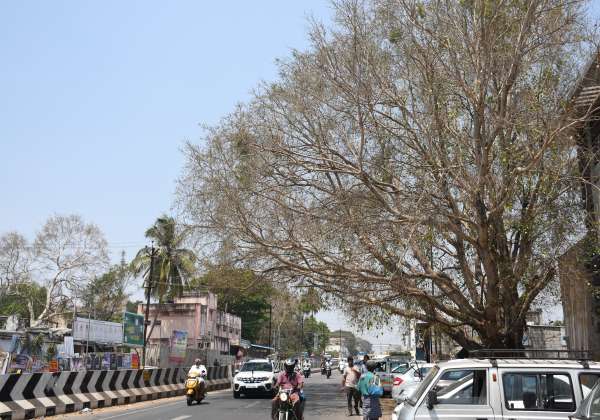 வெயிலின் தாக்கம் அதிகரித்து வருவதால், இலைகள் இன்றி காணப்படும் மரம். இடம்: பொள்ளாச்சி - கோவை ரோடு.