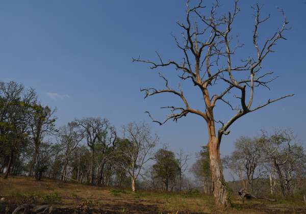 நீலகிரி மாவட்டம், முதுமலை புலிகள் காப்பாக வனபகுதியில், மரங்கள் வறட்சி காய துவங்கியுள்ளது.