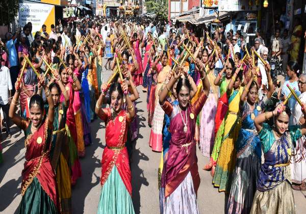 சென்னை திருவொற்றியூர் தியாகராஜ சுவாமி-வடிவுடையம்மன் கோவிலில் முக்கிய நிகழ்வான திருத்தேரோட்டம் தேரை வரவேற்கும் விதமாக சிறுமியர் கோலாட்டம் ஆடி வரவேற்றனர்.