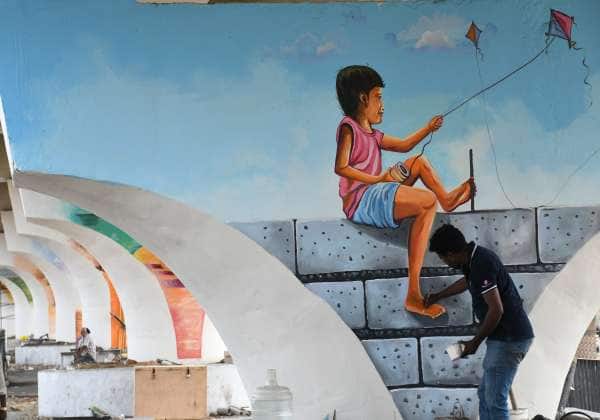 நெடுஞ்சாலைத்துறை சார்பில் கீழ்கட்டளை மேம்பாலத்தின் தூண்களில் கண்கவர் ஓவியங்கள் வரையும் பணி நடந்து வருகிறது. இடம் : கீழ்கட்டளை சந்திப்பு.
