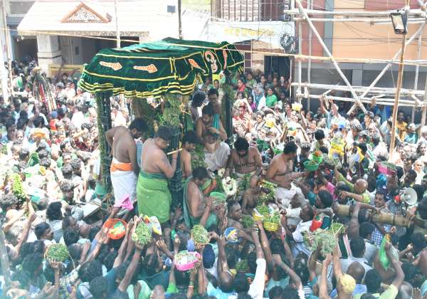 தூத்துக்குடி மாவட்டம் திருச்செந்தூர் சுப்பிரமணியசாமி கோவிலில் மாசி திருவிழாவின் 8ம் நாளில் சுவாமி பச்சை சாத்தி எழுந்தருளி பக்தர்களுக்கு அருள்பாலித்தார்.