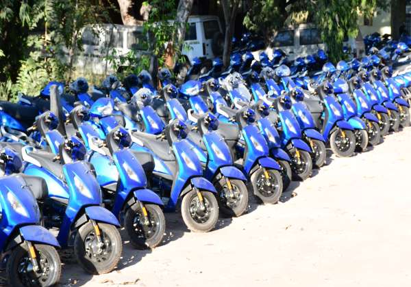 கோவை கலெக்டர் அலுவலகத்தில் மாற்றுதிறனாளிகளுக்கு வழங்கப்பட உள்ள இருசக்கர வாகனங்கள் வந்துள்ளது.
