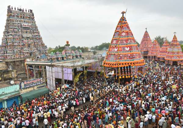 விருத்தாசலம் விருத்தகிரீஸ்வரர் கோயிலில் மாசி மக பிரம்மோற்சவத்தை முன்னிட்டு பக்தர்கள் வெள்ளத்தில் பஞ்சமூர்த்திகள் தனித்தனி தேர்களில் உலா வந்து பக்தர்களுக்கு அருள்பாலித்தனர்.