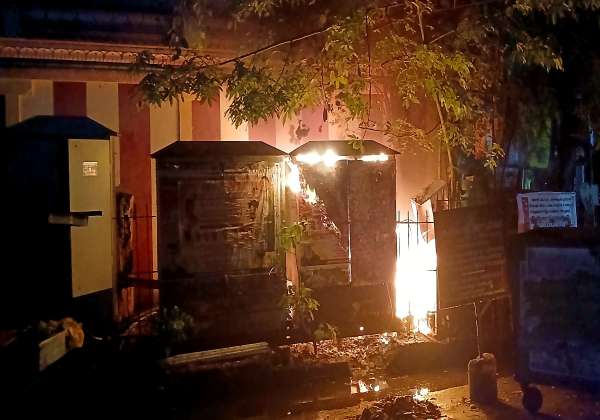 புதுச்சேரி காந்திவீதி பெருமாள் கோவில் பிளாட்பாரத்தில் உள்ள மின்சார பில்லர் பாக்ஸ் திடீரென கொழுந்து விட்டு எரிந்ததால் பரபரப்பு ஏற்பட்டது.