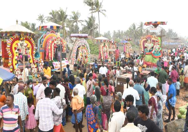 கடலூர் தேவனாம்பட்டினம் கடற்கரைக்கு மாசி மகத்தை முன்னிட்டு தீர்த்தவாரிக்கு வந்த சுவாமிகள்.