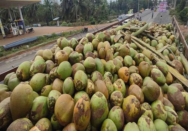 கடலூர் அடுத்து சேடப்பாளையம் பகுதியில் அறுவடை செய்யப்பட்ட இளநீர் விற்பனைக்காக சென்னைக்கு லாரியில் கொண்டு செல்லப்பட்டது.