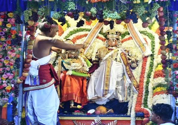கல்யாண சுந்தரர் மனோன்மணி தாயார் திருக்கல்யாணம் வெகு விமர்சையாக நடைபெற்றது. இடம்: சென்னை திருவொற்றியூர் தியாகராஜ வடிவுடையம்மன் கோவில்.