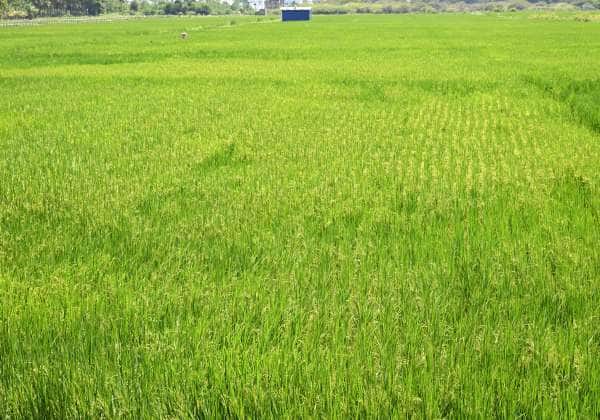 தொடர்ந்து பெய்த மழையோடு, நிலத்தடி நீரும் கைகொடுக்க பச்சைக்கம்பளம் விரித்தாற் போன்று பரந்து காணப்படும் நெல் வயல்கள். இடம்: மதுரை அருகே அய்யர் புதூர்.