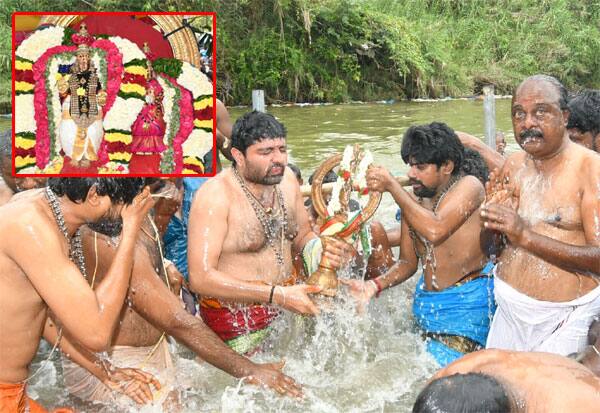 மாசி மகத்தை முன்னிட்டு திருவண்ணாமலை அடுத்த பள்ளிகொண்டாபட்டு பகுதியில் உள்ள கவுதம நதி கரையில், வள்ளலார் மகாராஜாவுக்கு, திதி கொடுத்த அண்ணாமலையார், சூலம் ரூபத்தில் தீர்த்தவாரி நடந்தது. உள்படம் : உண்ணாமுலையம்மன் சமேத அண்ணாமலையார் பக்தர்களுக்கு அருள்பாலித்தனர்.