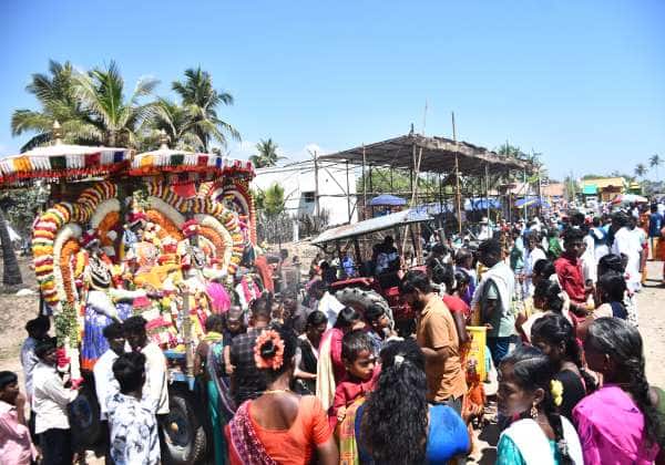 மாசி மகம் இரண்டாவது நாளை யொட்டி கடலூர் தேவனாம்பட்டினம் சில்வர் பீச் கடற்கரைக்கு தீர்த்தவாரிக்கு வந்த சாமிகள்.
