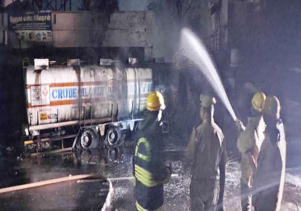 கடலூர் முதுநகர் சிதம்பரம் சாலை ஆயில் ஏற்றி வந்த டேங்கர் லாரி விபத்தில் சிக்கி தீப்பிடித்து எரிந்தது தீயணைப்பு வீரர்கள் தீயை அணைத்தனர்.