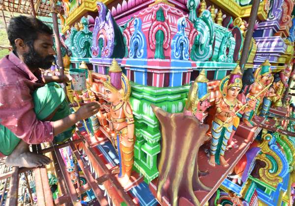 கோவை மருதமலை சுப்பிரமணிய சுவாமி கோவிலில் கும்பாபிஷேகம் நடைபெற உள்ளதையொட்டி ராஜகோபுரத்திற்கு வர்ணம் பூசம் பணி நடந்து வருகிறது.